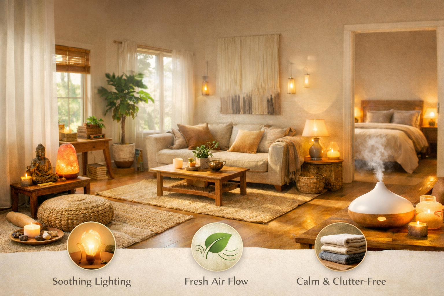 Wellness Renovation Questions, AnsweredA few common concerns come up once you start planning.Q: What are the most effective home renovations to improve natural lighting and how does this benefit mental health? A: Start with what increases daylight without major construction: lighter wall paint, sheer window treatments, and mirrors placed to bounce light deeper into the room. If your budget allows, consider enlarging a window or adding a skylight in a main living area. More consistent daylight can support steadier mood and better sleep rhythms, which helps your nervous system feel less “on alert.” Q: How can better ventilation and air quality upgrades in the home reduce stress and promote physical well-being? A: Replace HVAC filters, clean bathroom fan grilles, and verify every vent is open and unobstructed for an immediate change. For bigger wins, upgrade exhaust fans or add a balanced ventilation system if your home feels stale. Fresh, moving air often means fewer headaches, less grogginess, and calmer breathing during meditation. Q: What design elements create calming, restorative spaces that support emotional healing and spiritual balance? A: Prioritize softness and simplicity: layered warm lighting, natural textures, and a limited color palette that feels grounding. Add noise control with a solid-core door, rugs, and lined curtains, then protect tranquility with closed storage like baskets or cabinets so surfaces stay visually quiet. Q: How can I prioritize and budget home renovations that enhance both physical comfort and mental clarity? A: Choose one “high-relief” outcome first, like sleep support or less sensory clutter, then fund only the steps that serve it. Many beginners do well with a $500 to $5,000 starter range for lighting, paint, storage, and basic air upgrades, then expand later. Seeing that https://www.southalabama.edu/colleges/mcob/news/home-renovation-statistics.html reminds you you are not behind, you are simply choosing a scope that fits your life. Q: If I want to create a dedicated wellness room, how can specialized services help me plan and execute these renovations effectively? A: A designer, contractor, or space planner can translate your intention into a layout, lighting plan, and material list that stays buildable and code-aware. Ask for a phased plan so you can complete the room in calm stages, including sound control and storage. If the project touches water lines, confirm the exact parts you need first, then use a general https://www.supplyhouse.com/Plumbing-Supplies-1000 source to avoid buying mismatched fittings. Small, steady improvements can turn your home into a daily reset ritual. Pick Materials, Light, Air, and Quiet That Soothe YouYour home can act like a nervous-system “container”, either soothing you back to center or keeping you on edge. Use this menu of calming design elements to choose upgrades that fit your budget, your spiritual aesthetic, and your daily routines.